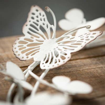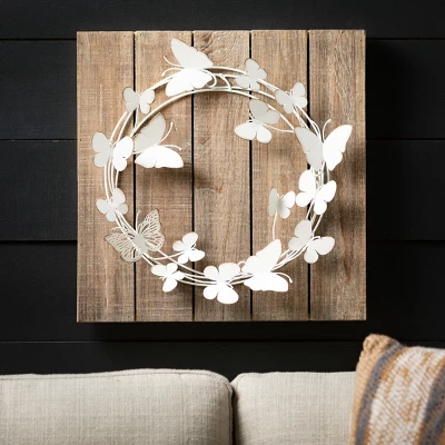 An everlasting statement piece, the wooden plank panel creates the perfect backdrop for this intricate wreath-shaped wall sculpture. Honoring nature in metallic form, artisans have hand-sculpted this beautiful crown of fluttering antique white butterflies. Over the last 55 years, Sullivans has become an industry leader in home decorations. Our brand is rooted in tradition while incorporating modernized trends to keep your home looking up to date with timeless style. Here at Sullivans, we pride ourselves on creating product designs focused on quality and value, ensuring that our customers have access to beautiful products at reasonable price points.