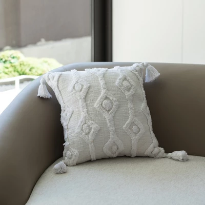 Embrace home decor style with the Deerlux Tufted Cotton Pillow Cover. Handmade by skilled artisans in India, size may slightly vary. Its 100% cotton material provides a natural rustic touch and authentic Bohemian flavor. Wash on gentle cycle, cold water and hang to dry. It features tufted pattern and tassel corners, making it a perfect home decor accessory for living room sofas, accent chairs, or for dressing up a bed.