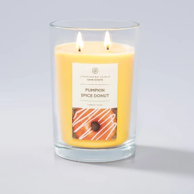 Enjoy a warm pumpkin donut dusted with maple sugar, cinnamon and nutmeg in the Pumpkin Spice Donut Fragranced Candle in the Home Scents Collection from Chesapeake Bay Candle®. Infused with natural essential oils, this large 2-wick candle creates a relaxing atmosphere in any room. The gold metal lid adds functional style to make an ideal gift for yourself or others.