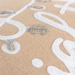 This hand screen printed pillow features machine embroidered accents. Gold foil printed botanicals accent the pumpkin as well as the leaves and berries. Festive and glammed, this pillow is a beautiful adornment for any transitional décor. A contrasting welt in the same teal frames this pillow. A back in a solid matching cotton features a hidden zipper closure.