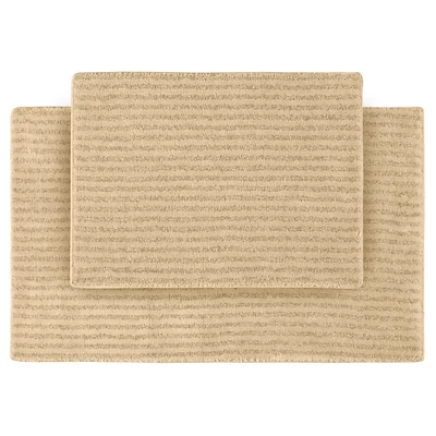 Finish off a great bathroom design by adding a set of soft bath mats. The Garland 2 Piece Sheridan Plush Washable Nylon Bath Rug Set has a subtle stripe pattern and is available in a range of colors that are easy to match to any decor. The set contains one 17×24″ bathroom rug and one 21×34″ bathroom rug.