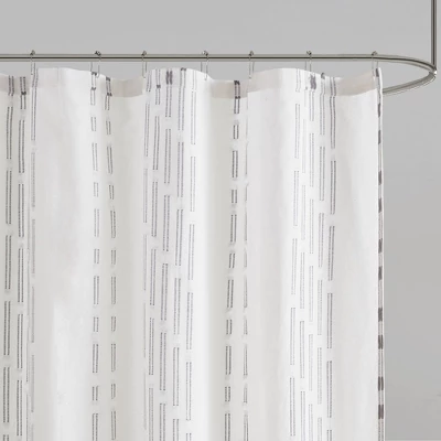 The INK+IVY Kara Cotton Jacquard Shower Curtain offers an eye-catching update to any bathroom dĂ©cor. This 100% cotton shower curtain features a beautiful stripe jacquard detailing on a soft ground for a stylish and sophisticated touch, while the chambray base fabric provides a natural look and feel. Machine washable for easy care; this shower curtain is also OEKO-TEX certified meaning it does not contain any harmful substances or chemicals, for the best in quality comfort and wellness. Each shower curtain measure 72″x72″ and is finished with 12 button holes at the top making it easy to hang; hooks, rod, and a water repellant liner are not included and will need to be purchased separately. Complete the look with coordinating bedding, available and sold separately.