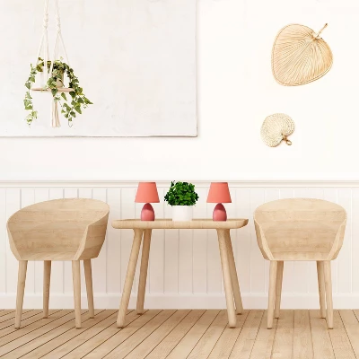 A petite table lamp set, each made primarily of ceramic with its oblong base shape sits beneath a matching colored tapered fabric shade for an overall effortlessly styled lamp suited for both your décor and lighting needs. A number of color options are available in this style, to compliment your decor just right.