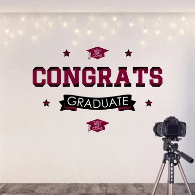 Maroon Grad – Best is Yet to Come Wall Decals Backdrop includes 1 sheet of vinyl wall stickers that include letters and shape pieces that form the perfect Burgundy Congrats backdrop for your Graduation Party. Wall Decal sheet measures 50 inches wide by 16.5 inches tall. Pieces range in size from 30 x 6.5 inches to 3.25 x 3 inches. Effortless Decor: The Maroon Grad – Best is Yet to Come stickers are an easy DIY party decoration that will make a big impact at your celebration. Stick them on a flat wall surface to create that picture-perfect setting and then grab your camera to capture all the fun. Easy to Use: Maroon Grad – Best is Yet to Come vinyl decals are easy-to-peel and repositionable. Wall art stickers will adhere to various surfaces including painted walls, plastic, wood, glass, and metal. To use, make sure your surface is clean and dry. Slowly peel the sticker from the paper to avoid tearing and smooth over with your hand. They are also easy to remove, leaving no residue. High-Quality Supply: Maroon Grad – Best is Yet to Come wall stickers come with a quality matte finish and vibrant colors. They are printed on water-resistant professional quality material and will arrive on one full sheet rolled. Made In The USA: Maroon Grad – Best is Yet to Come Wall Decals are designed and manufactured at our Wisconsin facility using materials that are Made in the USA.