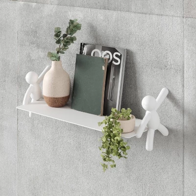 - PLAYFUL DESIGN: Buddy Wall Shelf features Umbra’s popular Buddy figurine, providing the illusion that Buddy is holding onto the shelf on each side