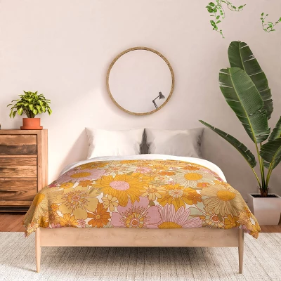 Deny Designs 3pc Iveta Abolina Retro Florals Comforter Bedding Set Orange