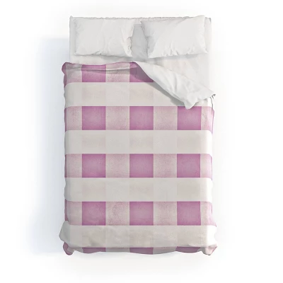 Farmhouse Shabby Gingham Checkered Plaid Monika Strigel Duvet Cover Set Purple/White – Deny Designs