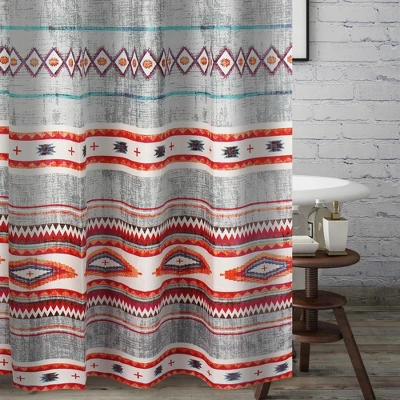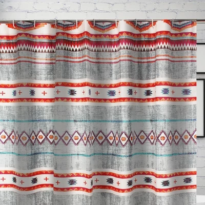 Spice up your space with the colorful western boho design shower curtain. Summon the spirit of the Great Southwest with the Kiva collection from Greenland Home Fashions. Enhancing your Boho surroundings, Kiva features neutral colors to coordinate with a wide variety of interior dĂ©cor themes. The distressed effect gives a rustic, stone-washed appearance for relaxed, casual living. Reinforced button holes along the top seam for easy hanging with standard shower curtain hooks (hooks not included). Designed for use with a waterproof liner (liner not included). Dimensions: The shower curtain measures approximately 72″” x 72″”. Machine Wash. 100% Microfiber polyester shell with 100% polyester fill. Imported. Machine washable.