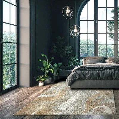 The Marble Abstract 9′ x 12′ Area Rug was designed to transform your home by adding the right splash of color and character. This modern rug features a blend of beige, gold, and gray hues as well as marble-inspired abstract patterns. Revamp your living room with the 8×10 rug or add comfort and coziness to your bedroom with a 6′ x 9′ rug size. This affordable 5×7 rug is made of high-quality synthetic fibers, and is a great choice for both low and high-traffic areas. It has a soft, plush texture that keeps your feet warm and cozy. Get this low-maintenance rug in blue with gold and gray accent colors to make a statement on your floors.