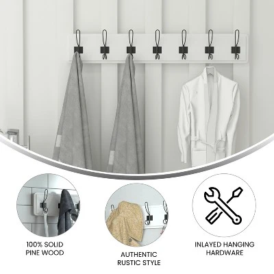 Maintain your unique style while also maximizing your living space with this wall mounted storage rack. Featuring 7 hanging hooks that hold up to 10 pounds each, this beautifully crafted organizational shelf will keep your storages, bags, belts, or scarves neat and tidy. Made from solid pine wood and available in multiple colors this enduring piece harmoniously blends classic style with 21st century functionality.
