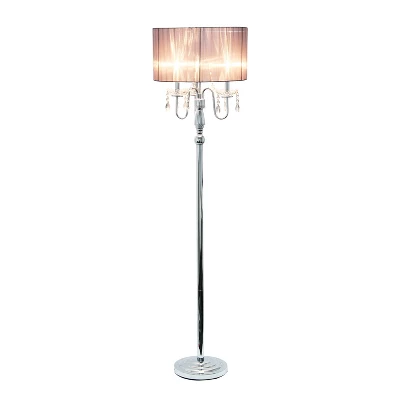 Crystal drop floor lamp. A modern twist on a classic floor lamp. Features a sheer shade, flawless chrome finish, and beautiful draping crystals. Great fit for any room! Use it in a bedroom to create a romantic atmosphere or in a living room or office to add some fresh decorative flair. We believe that lighting is like jewelry for your home. Our products will help to enhance your room with elegance and sophistication.