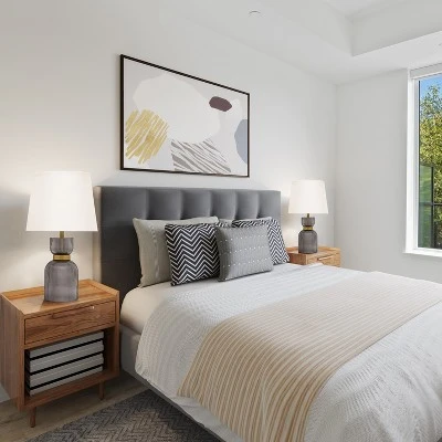 These 15.25″ H Kaia Cylinder Base Table Lamps from River of Goods make a great pairing with a variety of modern and transitional decor. This set of 2 lamps features smoky gray glass cylinder bases with gold bands and white fabric empire shades for standout style. The lamps require one 60-watt E26 bulb each (not included) and are LED compatible, and 60-inch cords with in-line switches offer versatile placement. Place them on side or console tables in any room, together or separately, to fill the space with soft, warm light.