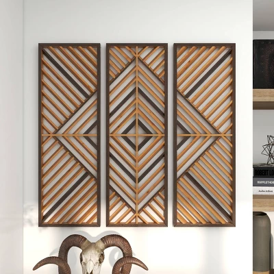 Create an excellent focal point on your walls paired with some cute accent tables, and level up your home with this amazing wall decor. Showcase your personality and turn your walls into an art gallery with this captivating wall décor. Mesmerizing wall art is ideal for industrial, eclectic, and farmhouse-inspired living spaces in a natural setting background. This item ships in 1 carton. Can be hung vertically using the D-rings on the back; nails and screws not included. Suitable for indoor use only. This item ships fully assembled in one piece. This brown colored wall sculptures comes as a set of 3. Contemporary style.