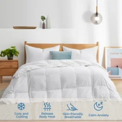 Puredown Lightweight Breathable 75% White Down Comforter Duvet Insert, Cooling Oversized Blanket