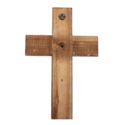 15.8″ X 10.2″ Decorative Wooden Cross Wall Art Worn White/Brown – Stonebriar Collection