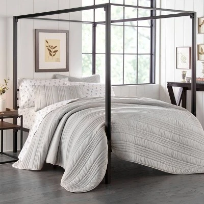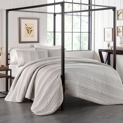 The simplicity of solid color is the perfect choice for creating a calm and relaxing environment. This all cotton quilt set, pre-washed for extra softness, offers inviting comfort and fresh styling with its spaced channel quilt pattern forming a dimensional classic stripe pattern. Offered in two different neutral colors, warm linen and cool horseshoe gray, choose the one that is right for you. Twin quilt set includes: one quilt (88″L x 68″W) and one sham (21″L x 27″W). Full/Queen quilt set includes: one quilt (90″L x 90″W) and two shams (21″L x 27″W). King quilt set includes: one quilt (96″L x 104″W) and two shams (21″L x 37″W).